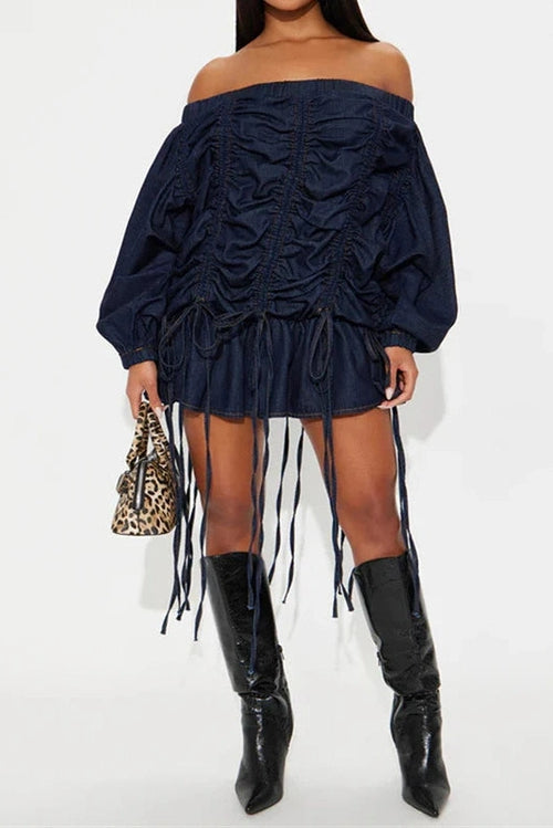 Glorol - Strapless Long Sleeve Off-Shoulder High Waist A-line Mini Dress -