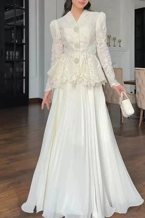 Glorol - Backless Lace-up Sleeveless Pleated Maxi Dress -